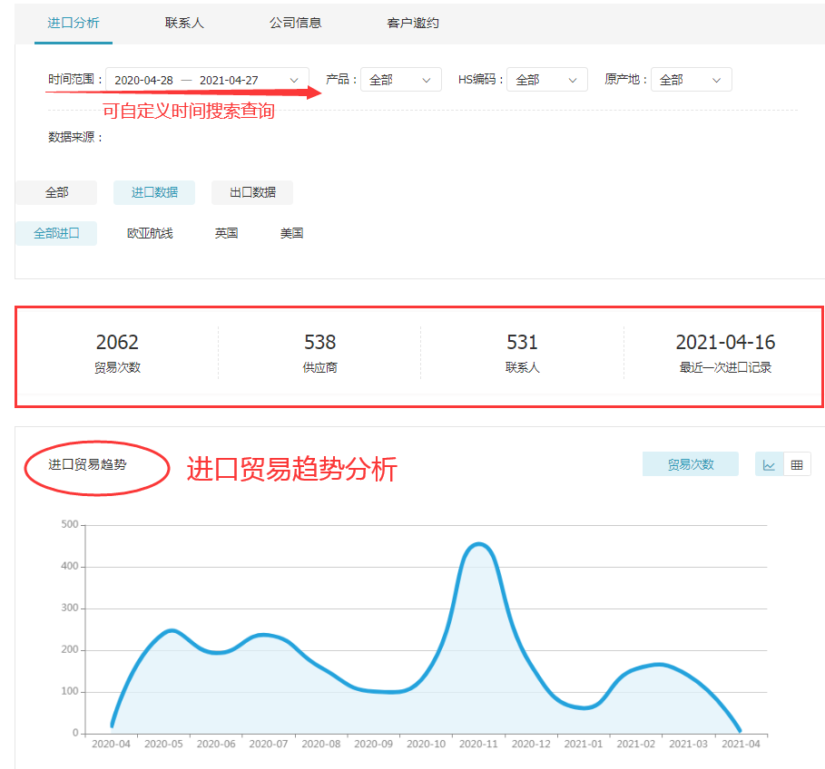 顺利获得凯发k8国际数据,外贸人可以清晰地看到采购商的进口交易信息(采购频率、采购数量,交易规模),判断开发价值,以此来选取目标客户,同时还能够获取目标地区贸易公司常用运货方式、包装方式,便于节约沟通时间,降低开发成本。